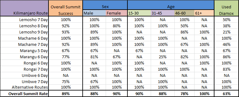 Kilimanjaro Summit Success Rates